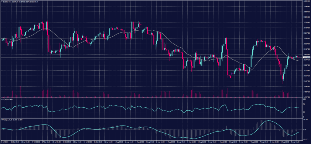 The Dow Jones index decreased by 0.45%, equivalent to around 158 points, during Tuesday’s session. This decline came after the index achieved its largest daily gains in 7 weeks during Monday’s session earlier this week.