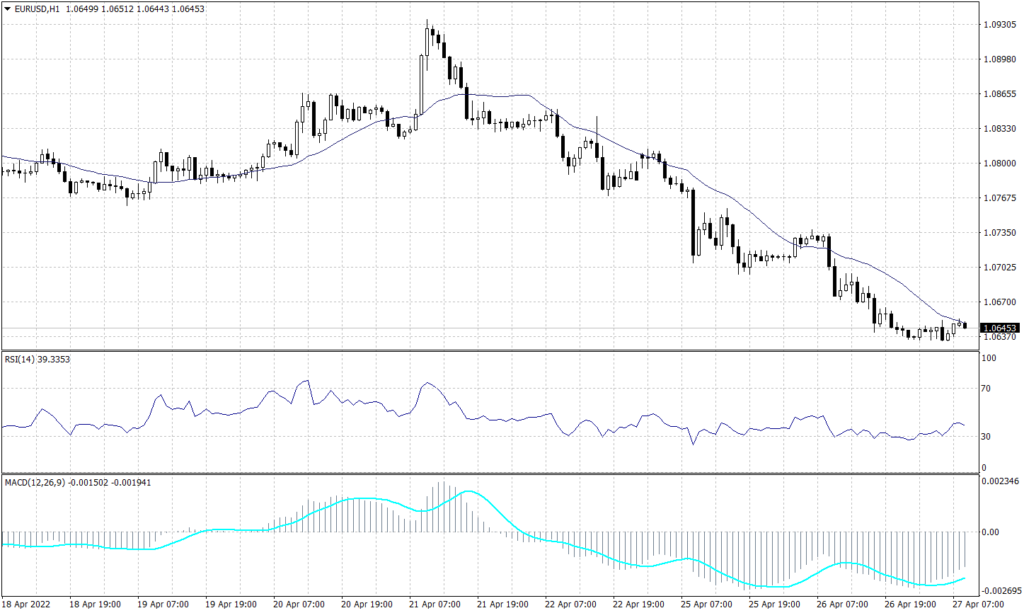 The pair is not showing any signs of recovery, but it is showing signs of targeting 1.0635 on the hourly chart. Meanwhile, on the longer time frame, the pair shows a possibility to reach 1.0325. Technical indicators show a slight swing along the way but remain confirming the downward trend.