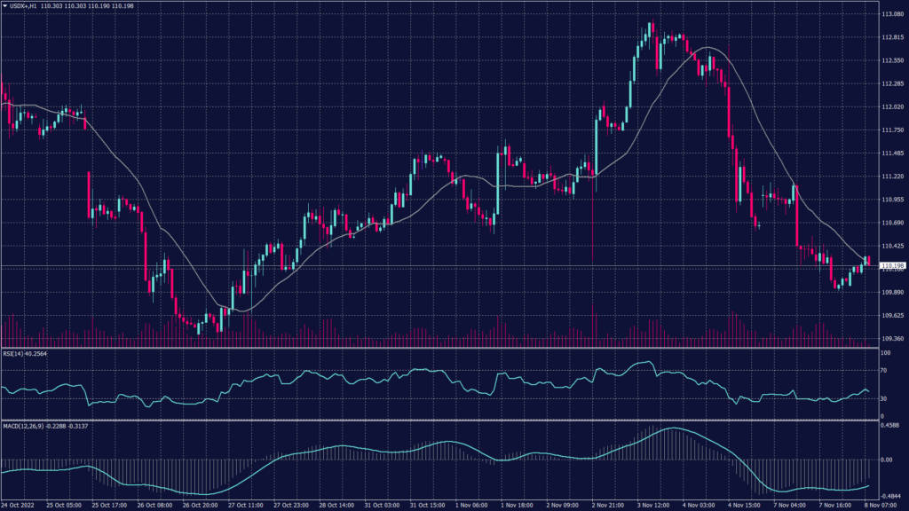 The hourly chart shows resistance at 111.08 and also shows the index heading towards 110.70. Meanwhile, technical indicators show slight divergence and the possibility of rebounding if the index gained momentum before breaking 110.30.