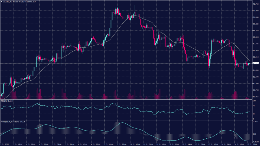 The WTI chart shows a downward trend on the daily chart while trading right above the support at 86.60. However, the technical indicators show a chance of fluctuations between 85.60 and 87.40 before deciding the actual trend.