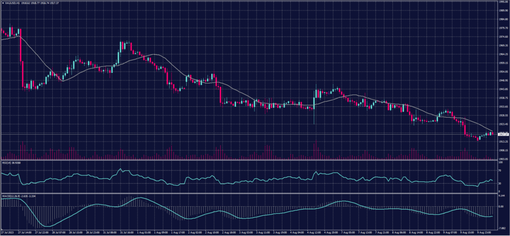 Gold rose 0.2 percent in spot trading to $1918 per ounce, but it is trading near its lowest level since July 10, which was recorded on Wednesday.