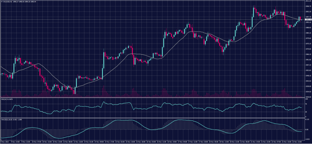The spot gold price witnessed significant fluctuations yesterday, briefly surpassing the $2000 threshold before declining below these levels. The initial increase led gold to rise to $2006.48, but the momentum did not last long as there were shifts in investor sentiment in response to recent U.S. economic data.