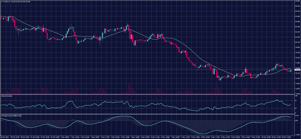 Intermediate (WTI) crude rose by $1.43, or 1.9%, to $77.17 per barrel at the close.