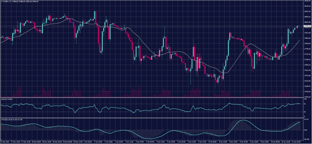 The Dow Jones index posted a 0.45% gain, equivalent to 170 points on Wednesday’s session, marking its highest close in a week. The S&P 500 also showed a 0.57% increase, bringing it within 0.27% or 13 points of its record closing at 4796.56, recorded on January 3, 2022. Simultaneously, the Nasdaq Composite rose by approximately 0.75%, achieving its fourth consecutive daily gain.