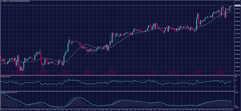 The Dow Jones Industrial Average rose by 0.04%, or 13 points, bringing gains to 7% since the beginning of November, heading for its highest monthly gain since October 2022. Meanwhile, the NASDAQ fell by about 0.2%, and the S&P 500 declined by less than 0.1%. Nevertheless, the S&P 500 remained up over 8% since the start of November, aiming for its highest monthly gain in 16 months.
