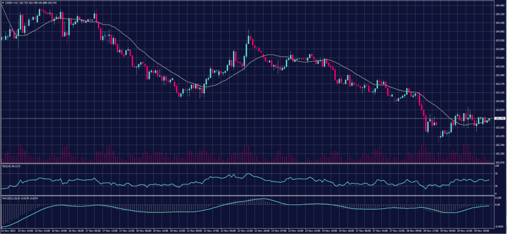 The dollar index has stabilized slightly above its pivot point, currently trading at $102.74, as investors await the personal consumption expenditures (PCE) data for October.