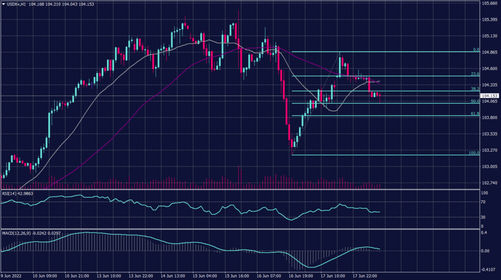 U.S. Dollar Index traded 0.75 points lower this morning reaching below the moving averages level. Meanwhile, moving averages intersect at 104.40 on the hourly chart indicating an intraday decline.