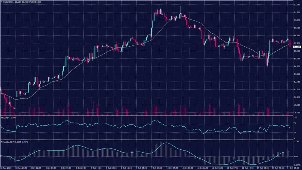 The WTI chart shows a downward trend on the daily chart while trading right above the support at 86.60. However, the technical indicators show a chance of fluctuations between 85.60 and 87.40 before deciding the actual trend.