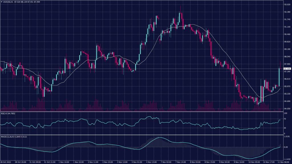 WTI declines to 87.50 which is considered major support, breaking this level might lead to a drop towards 84.85 on the hourly chart and 76.10 on the daily chart. However, technical indicators on both time frames show resilience with a probability of further gains.