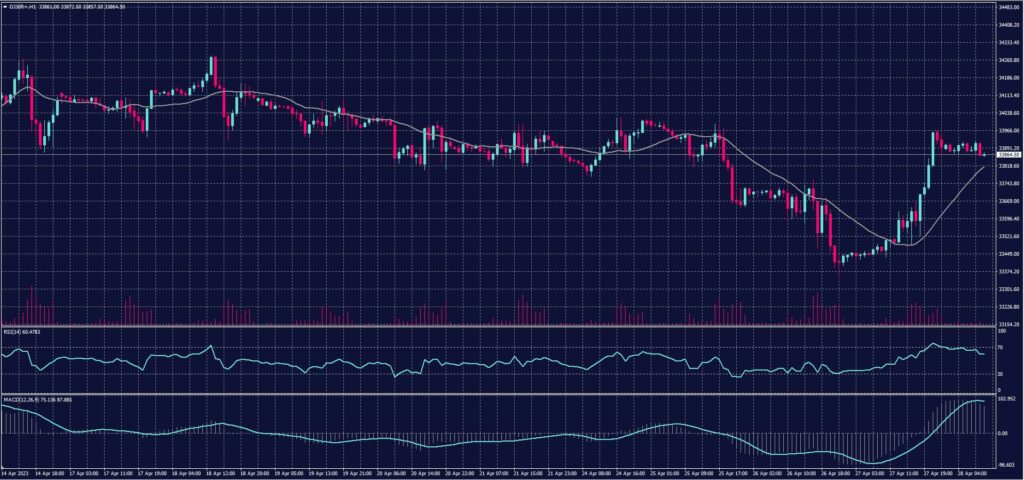 In Thursday’s session, the US indices closed notably higher, buoyed by the robust rebound of Meta and other technology stocks. Despite reports of a slowdown in economic growth during the first quarter, this data was largely overlooked by investors.