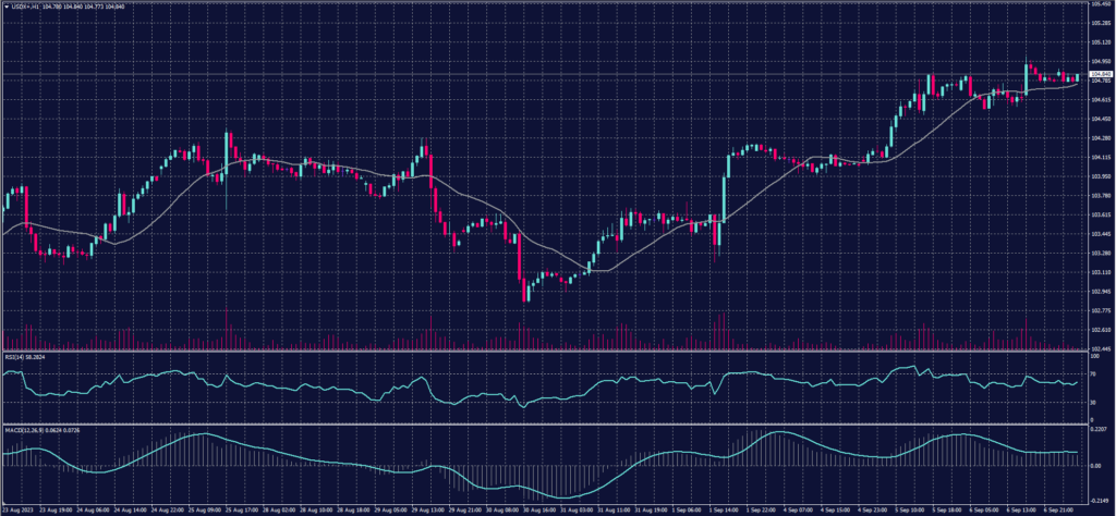 The dollar is currently trading above its pivotal point at $104.85.