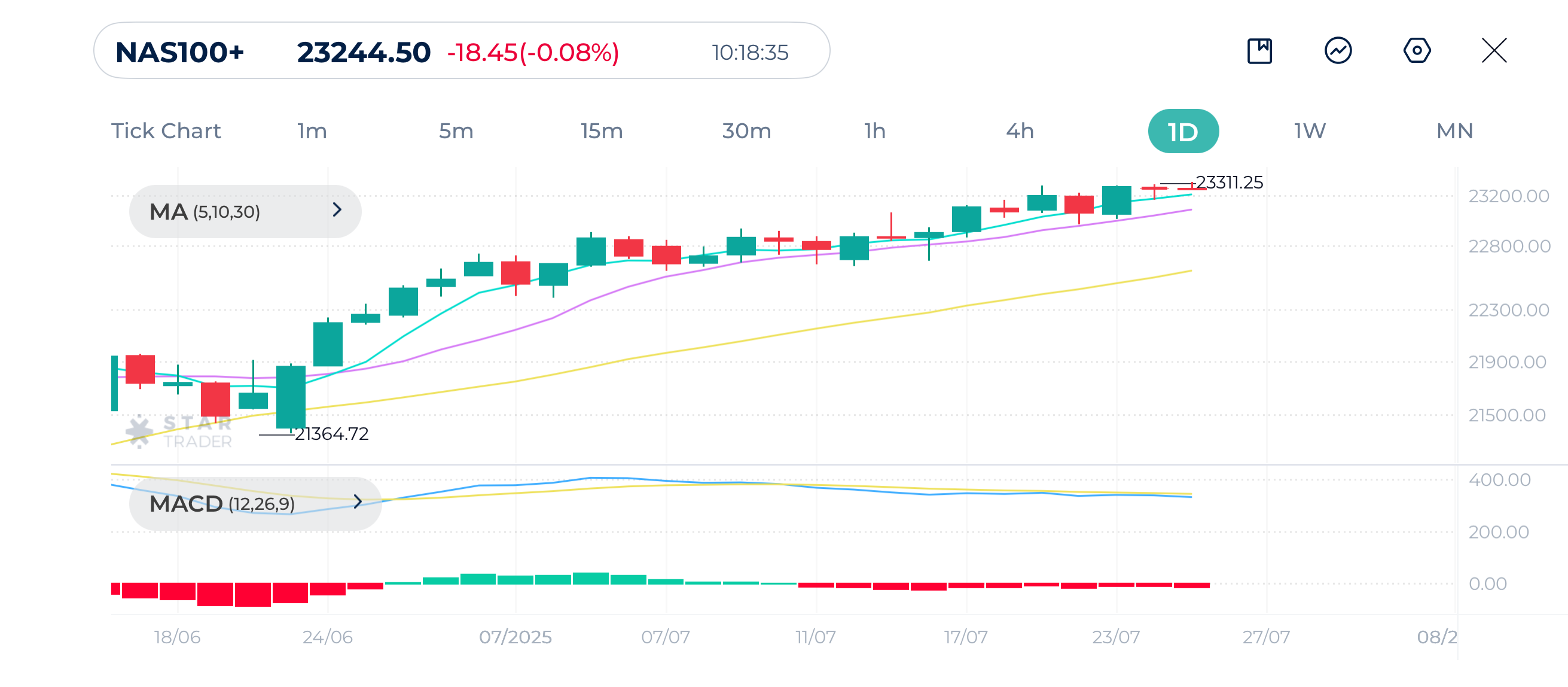 Moving averages MA(5) and MA(10) are sloping down, acting as short-term resistance. If price closes below all short-term moving averages, this indicates short-term bearish sentiment.