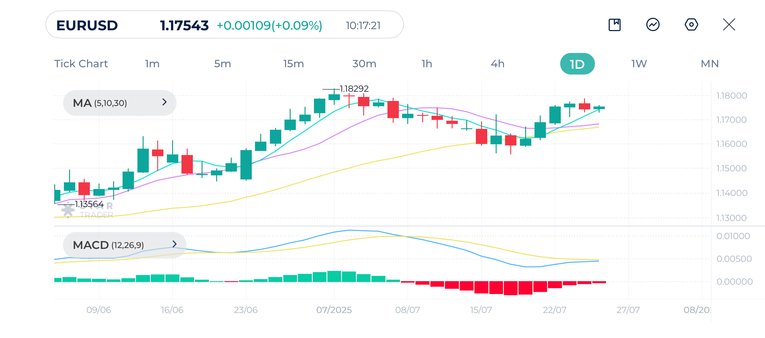 The Euro continues to rise against the US dollar as it nears psychological level 1.1800. Daily candlesticks broke above three moving averages (MA5), MA(10), and MA(30), suggesting bullish momentum.