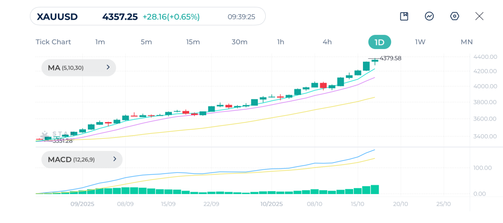 - 金価格は1オンス=4,380ドルを突破し、史上最高値を更新。過去数十年で最も好調な週次パフォーマンスを記録。