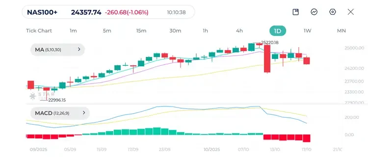 ナスダックは直近の強い上昇基調が急な反落により一服。